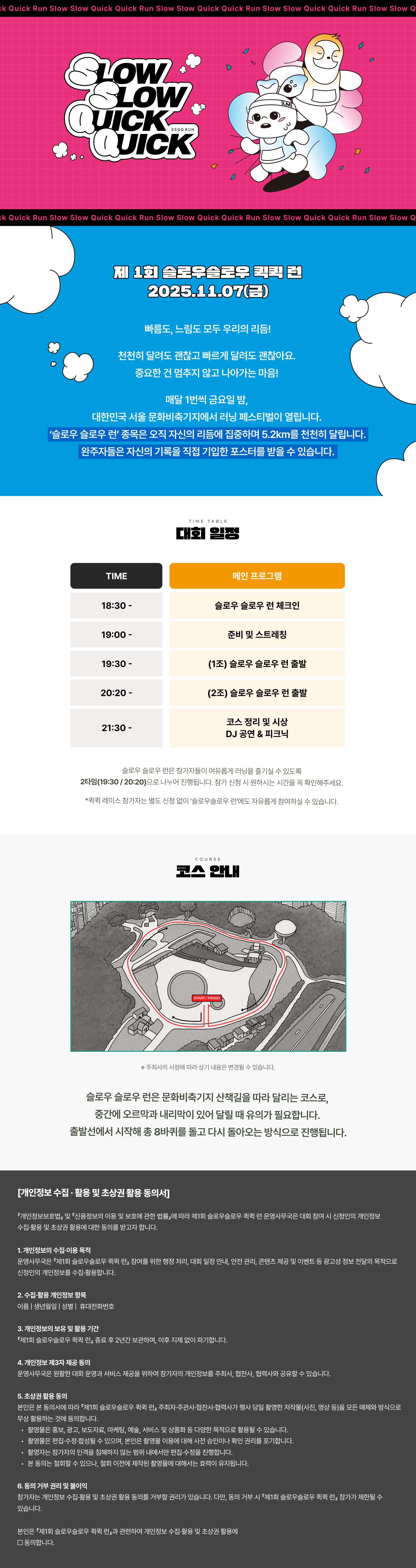 👉 참가자들의 여유로운 러닝을 위해 두 타임(1조/2조)으로 운영됩니다. 신청 시 원하는 출발 시간을 반드시 확인해 주시기 바랍니다.